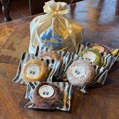 がサテンのばり可愛巾着に6個の米粉の焼きドーナツが入ります